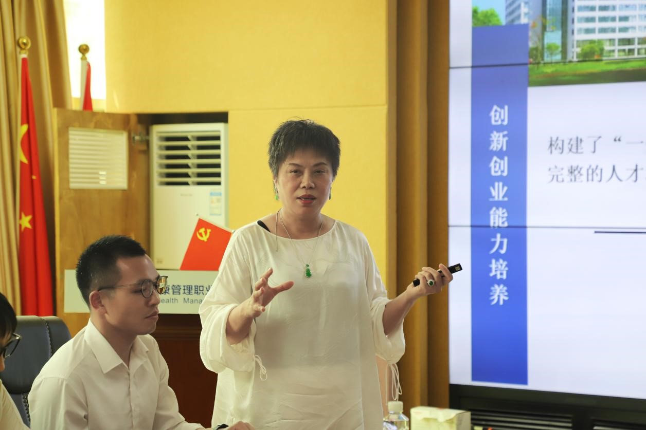海南健康管理学院是全国唯一一所以“健康管理”命名的高校,由数字健康独角兽之一微医集团投资举办。在海南健康管理学院,史宝凤校长一行深入了解了微医集团打造数字健康产业生态圈,海健院聚焦集团和市场需求开设专业,发挥集团人才蓄水池的发展模式。