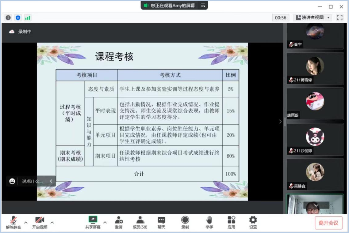 2022年8月30日全校师生迎来新学期第一节课,任课教师提前调试设备并发布课程时间和直播地址,熟练掌握超星学习通、腾讯会议等线上平台,教学目标明确,授课思路清晰;学生准时进入“直播间”,课程秩序井然有条,学生上课积极性高,师生互动热烈;教务处等行政部门随时待命,时刻关注教学进度,做好突发事件的应急预案。