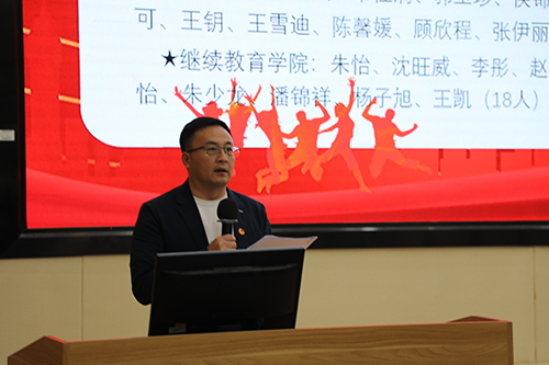 校团委书记管清华宣读《关于表彰2022-2023学年度优秀共青团员、优秀共青团干部、先进团支部和先进团总支的决定》、《关于表彰硅湖职业技术学院“优秀志愿者”、“品牌社团”、“十佳社团”的决定》和《关于表彰2022-2023学年度获得国家奖学金、国家励志奖学金、校内奖学金的表彰决定》。