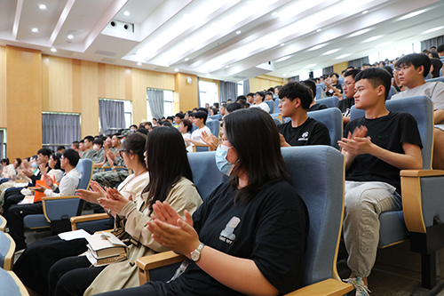 陈婧雯同学、黄豪杰同学、刘冰雪同学、李紫浣同学,分别代表优秀共青团员、优秀共青团干部、优秀志愿者、国家励志奖学金获得者发言。