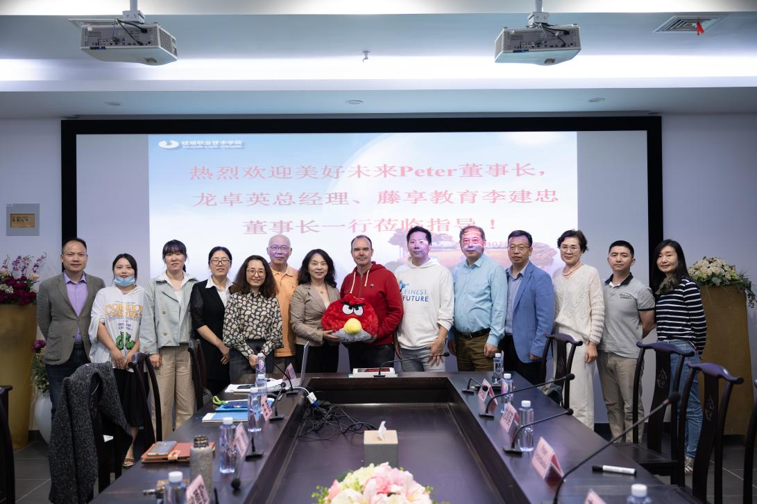 10月16日下午3点半,“愤怒的小鸟”创始人、美好未来项目芬兰公司董事彼得·韦斯特巴卡先生(Peter Vesterbacka)及美好未来项目芬兰公司总经理龙卓英先生、上海藤享教育科技有限公司董事长李建忠先生以及藤享教育股东合伙人邵伟超先生、梁效彦教授、叶军先生,藤享教育市场部经理程碧莹女士来访我校。