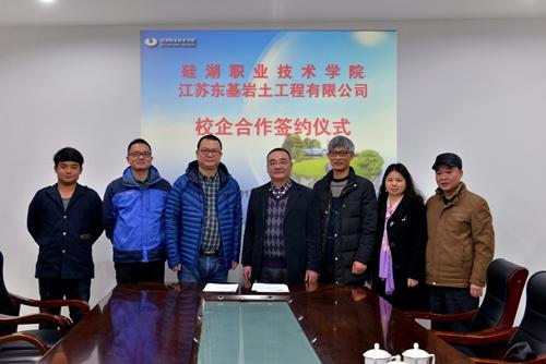 12月28日下午,江苏东基岩土工程有限公司与硅湖职业技术学院,就加大校企合作力度,设立“硅湖东基奖学金”签订仪式在硅湖学院C6会议厅举行。学校党委副书记顾定红、工会主席祁丛林、教务处副处长戴国梅以及建筑与环境系副主任石建甫、江苏东基岩土有限公司总经理申云勇等共同出席了签订仪式。