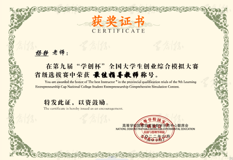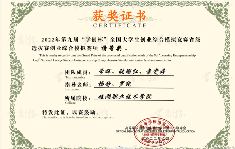 On May 21, 2022, the selection of the main track of Jiangsu Province for the "Learning &Innovation Cup" National College Student Entrepreneurship Comprehensive Simulation Competition held by the Economics and Management Discipline Group of the Joint Conference of National Experimental Teaching Demonstration Center of Higher Education was held online as scheduled. The two teams of the School of Economics and Management of our school took part in the competition again under the leadership of the advisors, Vice President Professor Luo Chun and Associate Professor Yang Jing. They achieved great achievements and won the special prize and the second prize, which broke the historical record of our school again.