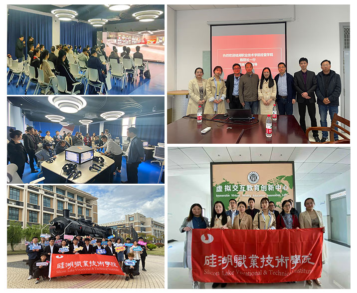 进入上海应用技术大学校园,上应winner青创社的同学带领硅湖师生参观了上应大的校区火车头广场、植物园、阳光房与实验室,随后进入虚拟交互教育创业中心,进行沉浸式上课体验,参观体验VR实验室、轨交实验室等感受科技与教育创新的融合。