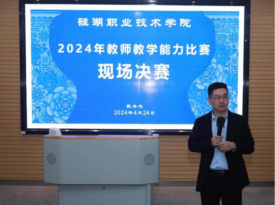 2024年4月24日下午,育才楼102教室里气氛紧张而有序。来自8个学院的9支教学团队、30余名教师进行了2024年硅湖职业技术学院教师教学能力比赛现场决赛。