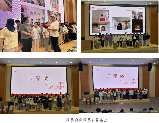 经过2小时的公正评选,18间优秀宿舍从54间参赛宿舍中脱颖而出,其中一等奖4间、二等奖6间、三等奖8间。当晚18:00,颁奖仪式在育才楼104举行,蔡森老师为获奖宿舍颁发荣誉证书及生活用品类奖品,现场合影定格荣耀瞬间。获奖宿舍代表杨僖同学表示,其宿舍以“蝴蝶搭配云朵”为主题,评比过程中既维护了环境又增进了协作,未来将继续守护这份温暖的“第二个家”。