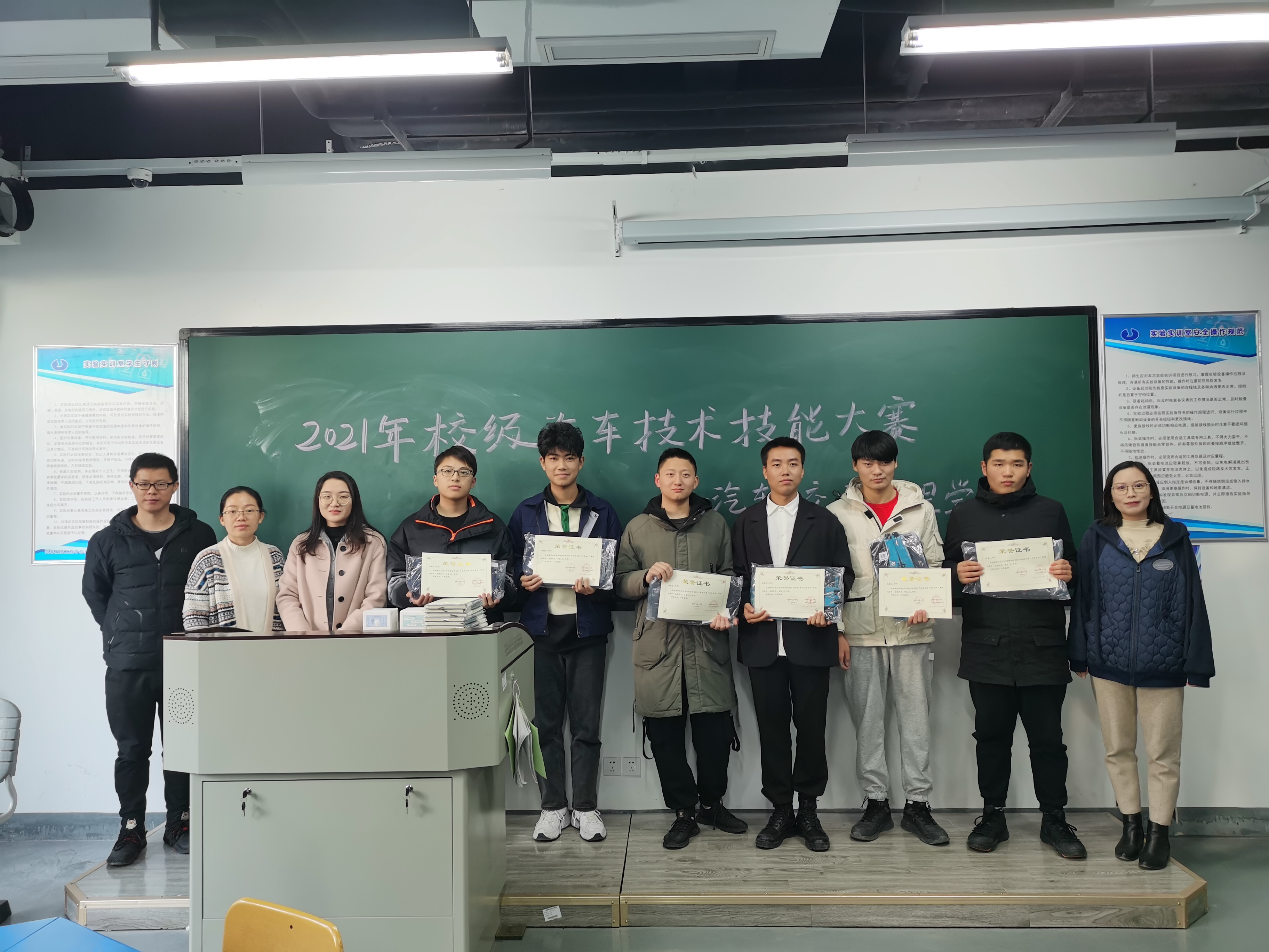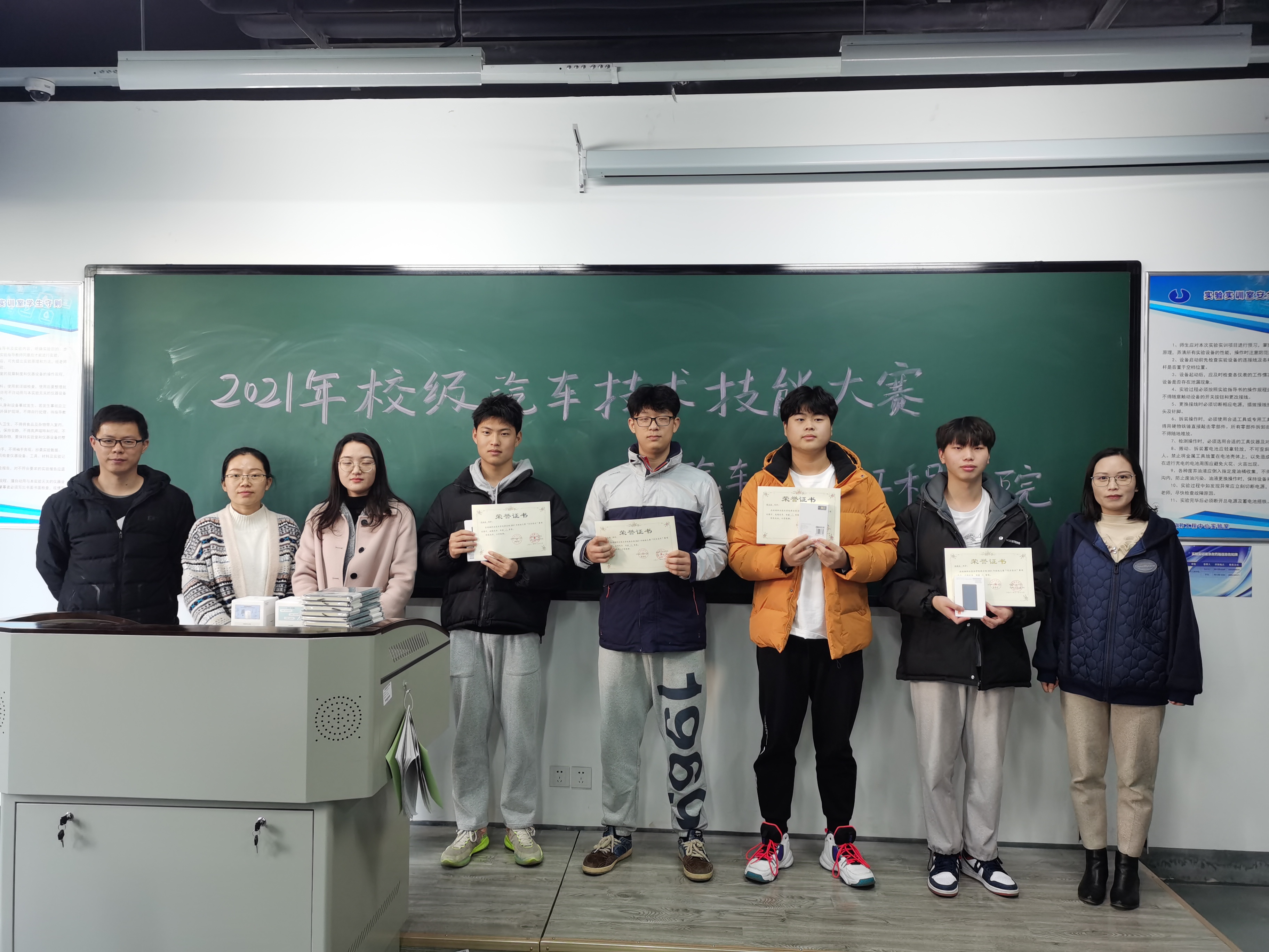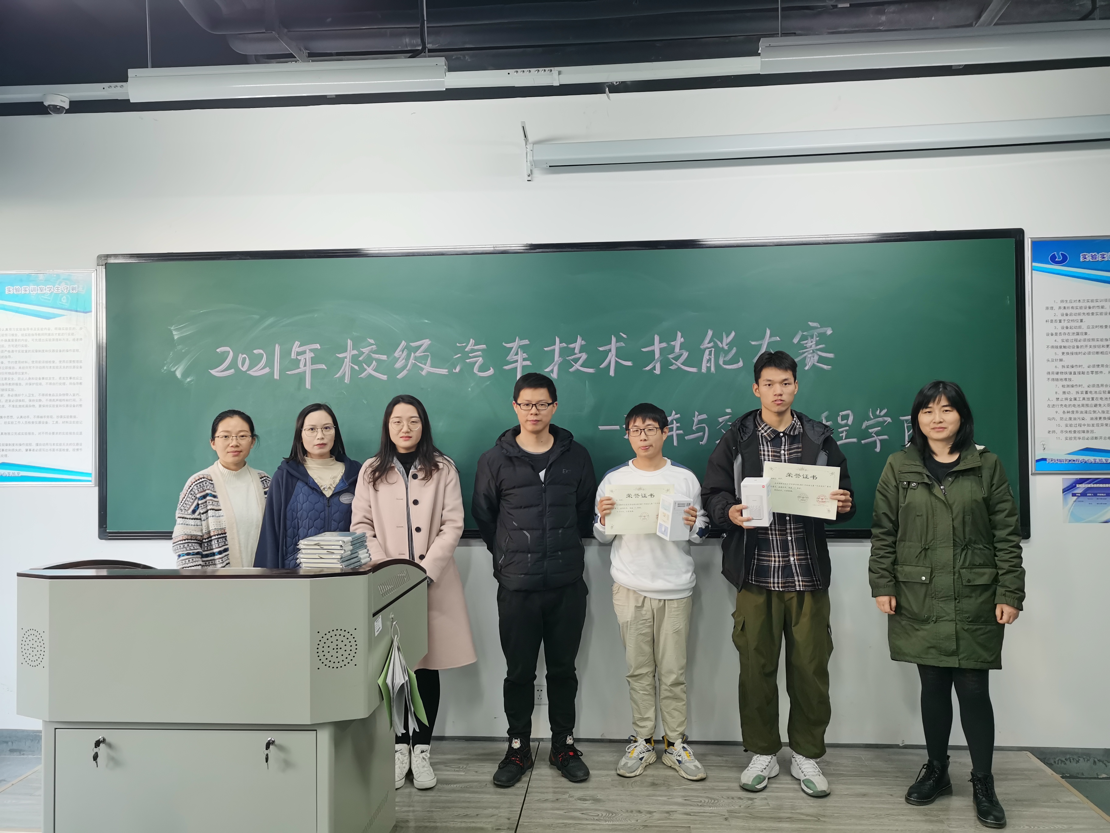 本次技能比赛在汽车与交通工程学院的精心组织和评选下,14组参赛组经过激烈的比拼,共决出一等奖两名,二等奖四名,三等奖六名,参与奖十八名。大赛为各获奖选手颁发了奖状及奖品。许彦助理向两位一等奖获奖选手及四名优秀指导老师颁发了奖状。
