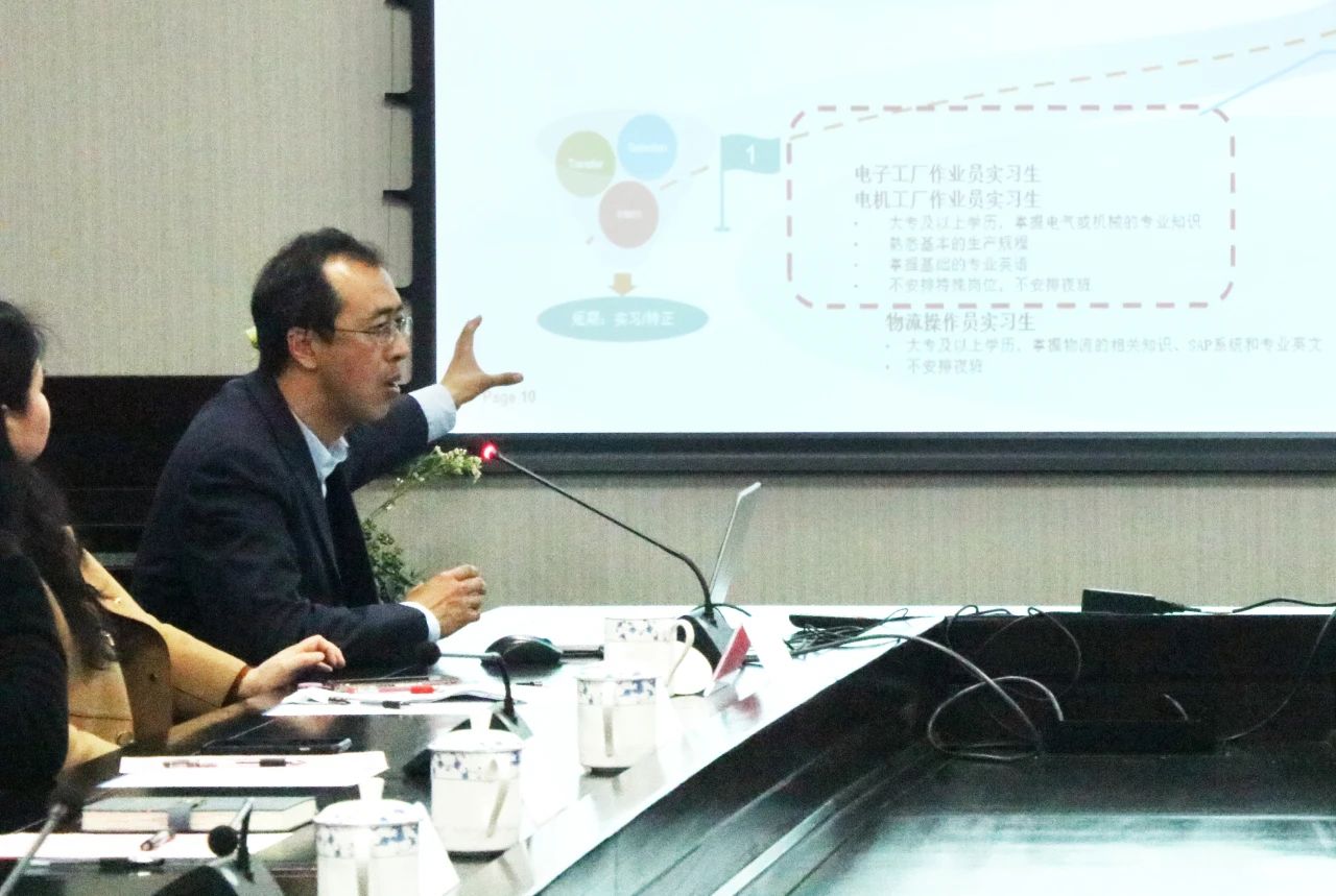 随后,双方就2023年进一步深化校企合作,开办2021级昆山沪光订单班事宜进行了热烈讨论。机电工程学院张盛院长详细介绍了我校校企合作成功案例--“西门子数控实践班”的成立背景、培养模式。
