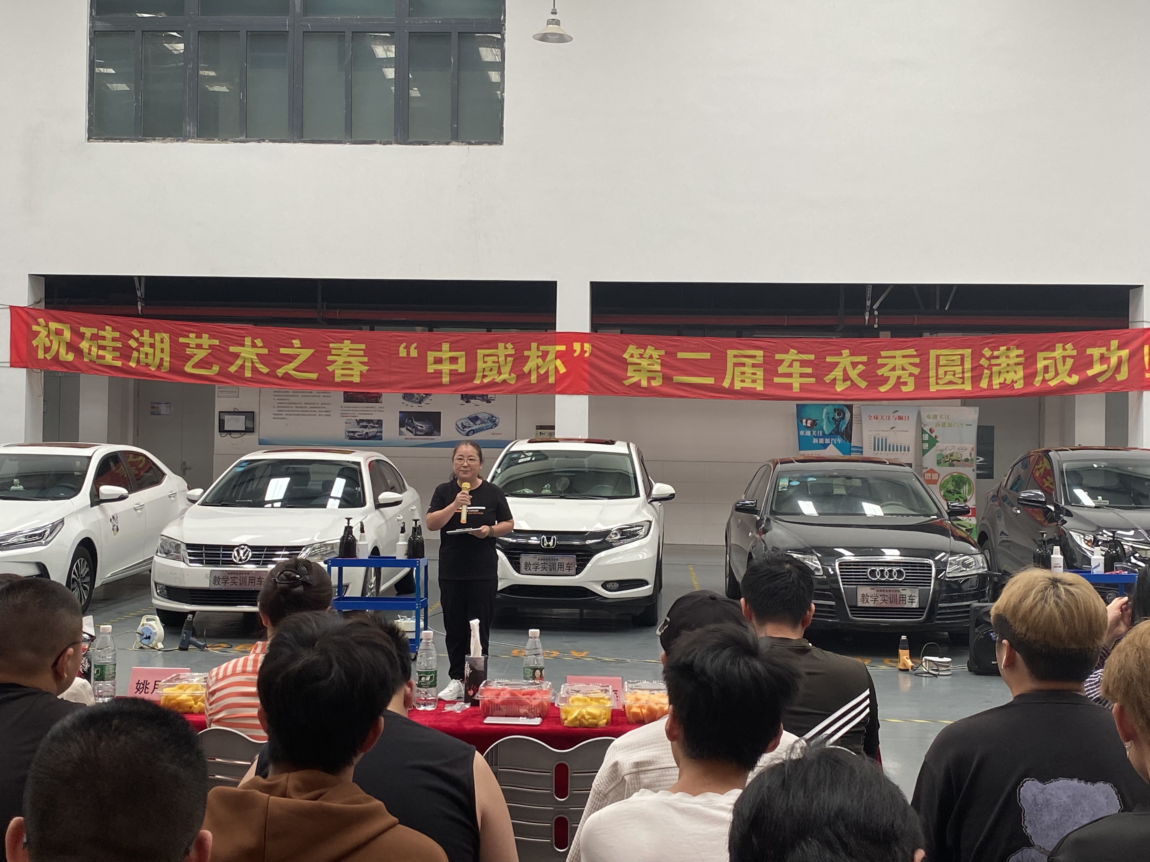 2023年6月7日,由教务处、校团委主办,汽车与交通工程学院承办、车之威中威车饰硅湖学校店协办并赞助支持的第十七届“硅湖之春”文化艺术节活动之第二届“硅湖—中威杯”车衣秀比赛在敏行楼一楼实训大厅举行了决赛及颁奖仪式,此次活动得到了校企合作处、人事处、学工处及兄弟院部的大力支持。本次活动由汽车与交通工程学院院长助理许彦支持,出席活动的领导和嘉宾有:执行校长曾勇勤博士、校长助理姚月霞教授、校企合作处处长戴国梅、人事处处长何琦、教务处副处长王海舟、学工处处长助理陈建隆。汽车与交通工程学院院长梁文亮致欢迎辞,中威智投副总经理陈东梅出席比赛并代表企业致辞。