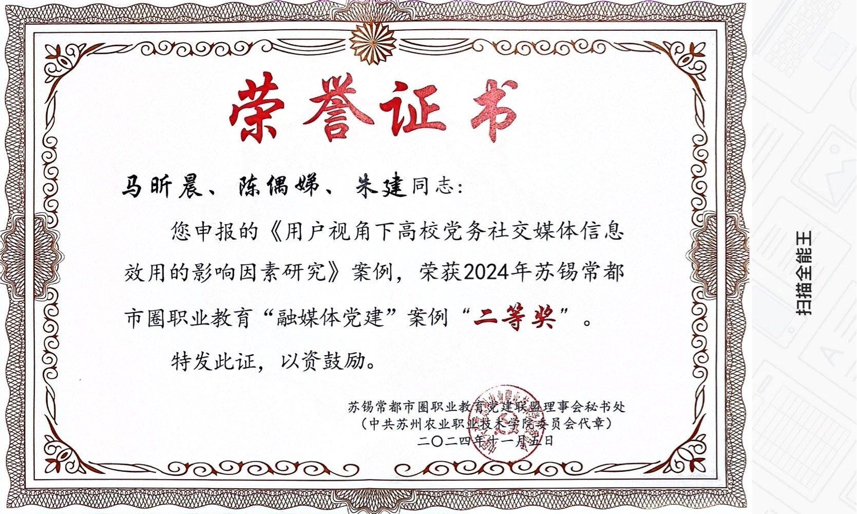 获苏锡常都市圈职业教育“融媒体党建”优秀案例二等奖